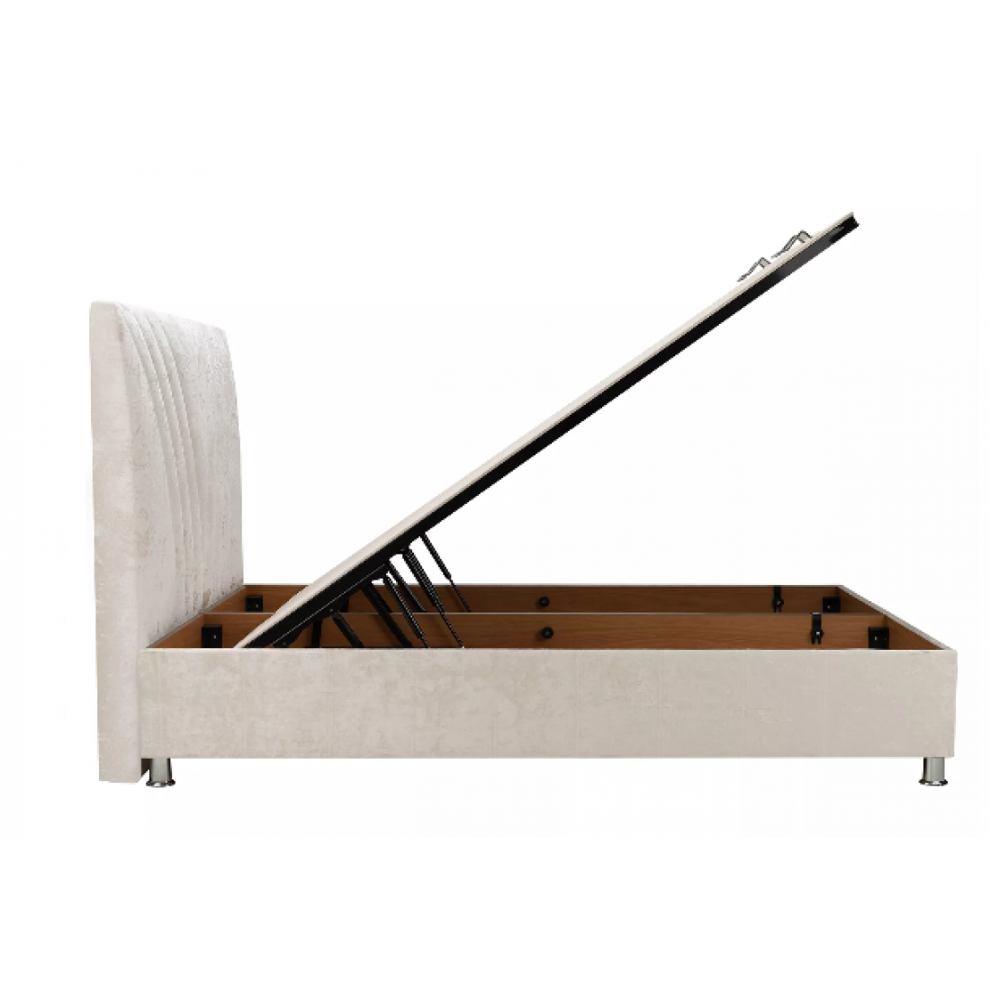 Элегантная база с обивкой из мебельной ткани. Данная модель идет в комплекте с вкладным, жестким кроватным основанием, оснащенным двухсторонним газоподъемным механизмом с двухсторонним фиксатором. Подъемный механизм, которым оснащено основание кровати, добавляет комфорта в использовании модели, облегчая доступ к вместительному ящику для белья.