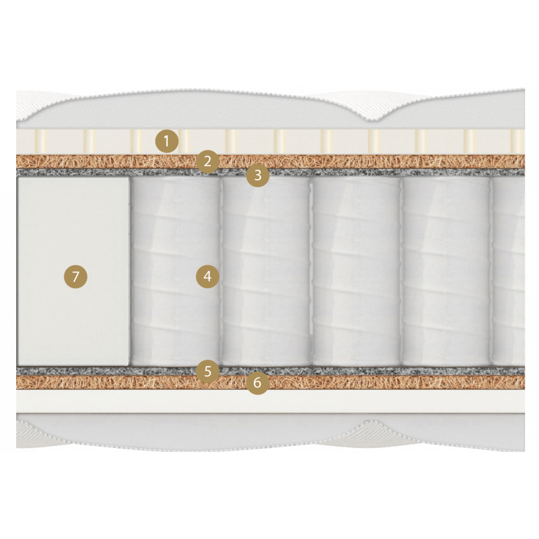 Первая сторона матраса - умеренно жесткая. Комфорт и отличную поддержку позвоночнику обеспечивает сочетание натурального бельгийского латекса и плотного латексированного кокоса с термофиксированным фетром. Матрас ощущается плотным и устойчивым.