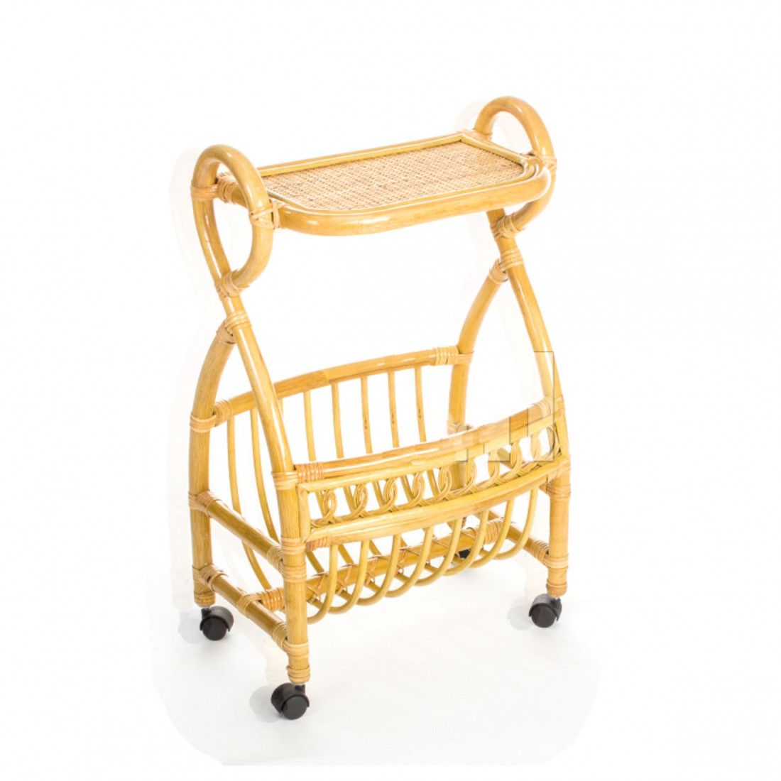 Столик с подставкой для газет на колесиках из натурального ротанга подойдет и для дачи, и в загородном доме и в любой квартире. Мебель из ротанга изготавливается вручную, ей не страшны перепады температуры.