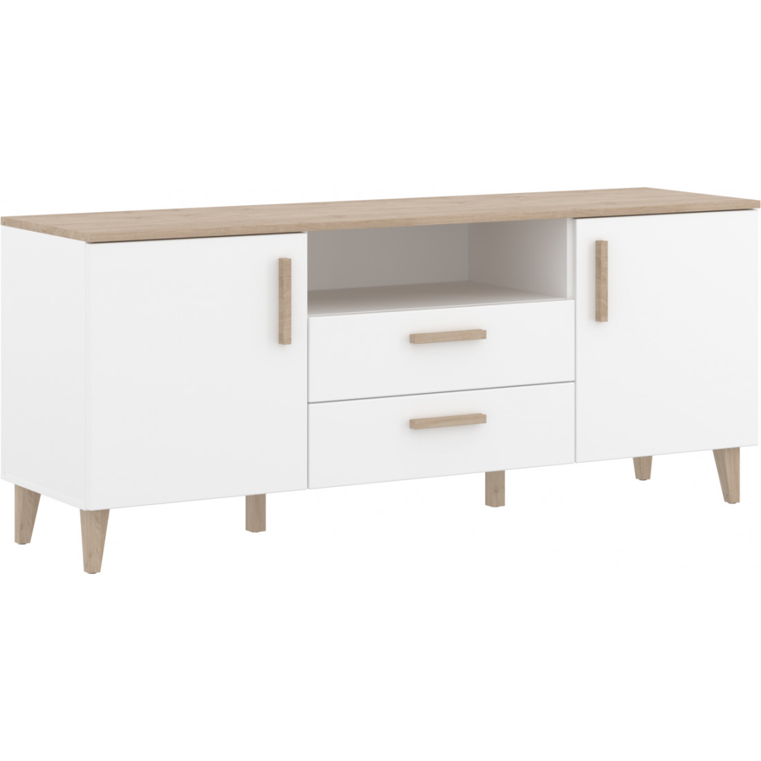 Тумба с нишей, 2 отделения с распашными фасадами и 2-мя выдвижными ящиками;